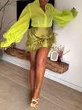 Hand-embellished Feathers Two Pieces Dress