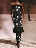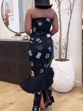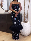 Strapless, concealed back zip fastening, ankle length