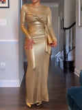 Indulge in luxury with our Gold Bodycon Dress. This stunning piece features a body-hugging fit, ruched detailing, and a glamorous gold color. With a flattering self-tie at the waist and shoulder pads for added structure, this dress is perfect for making a statement at any upscale event. Feel like a true VIP in our exclusive design.
