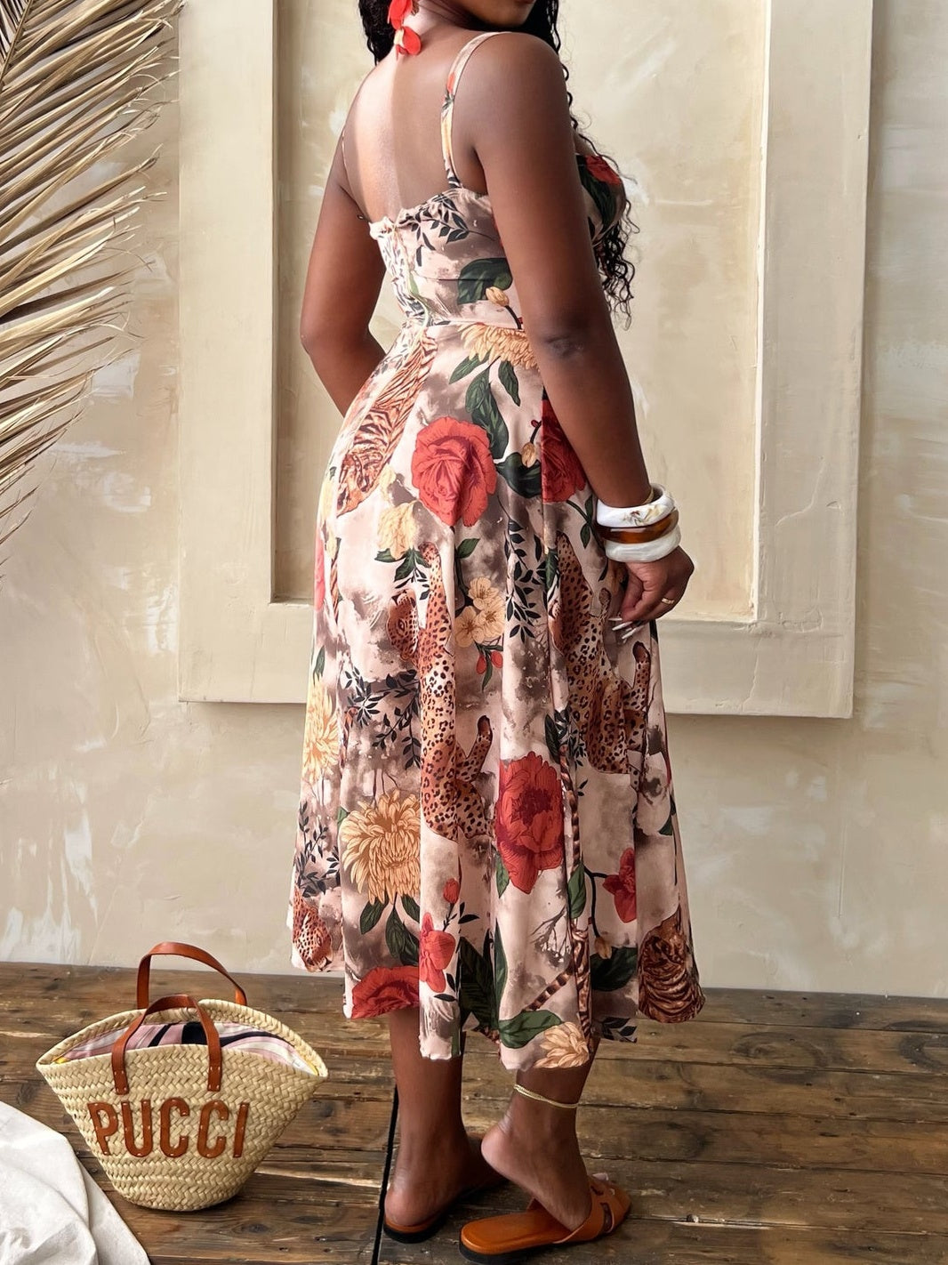 Safari Chic is the stunning elevated animal print n dress. Earth tones shine in this printed beauty!