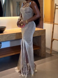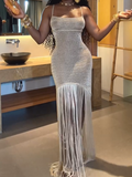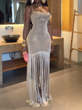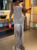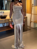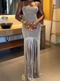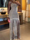Irregular Shiny Tassel Sleeveless Maxi Dress