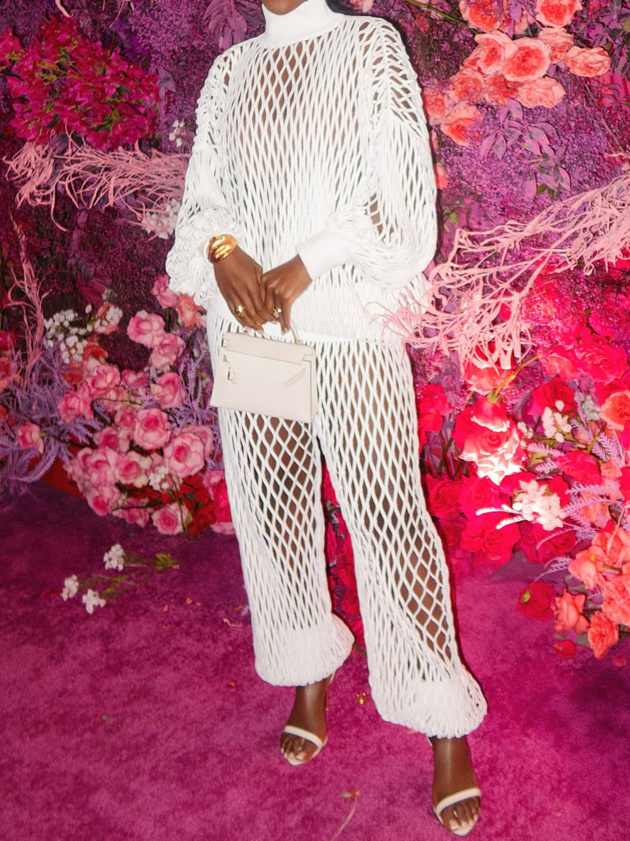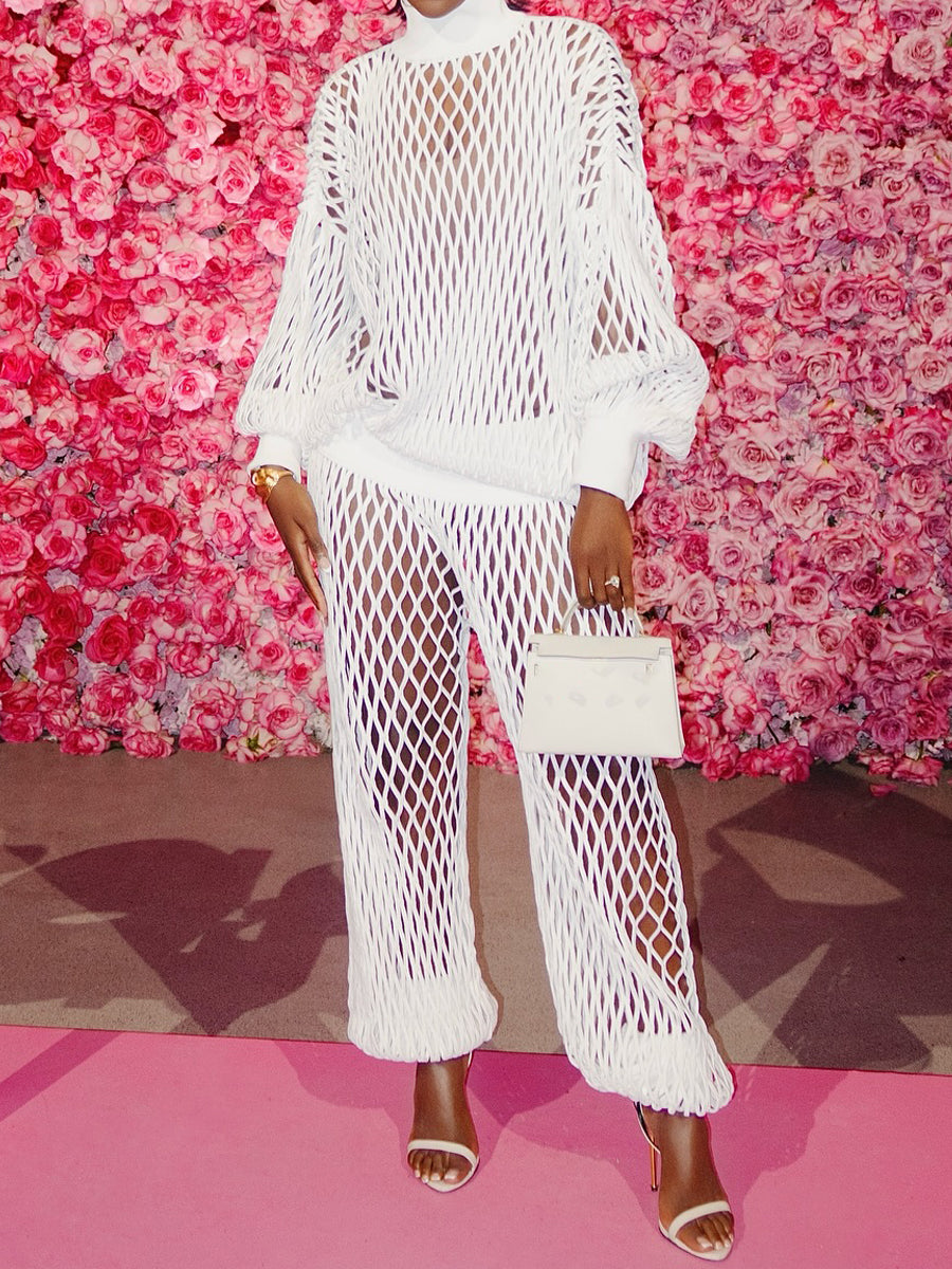Self 1: 63% viscose, 25% polyester, 8% linen, 3% polyamide, 1% elastane 69% viscose, 23% polyester, 7% polyamide, 1% polyurethane. Dry clean only. Pull-on styling. Open knit fabric.