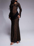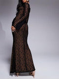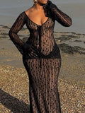 Lace Cup Detail Long Sleeve Maxi Dress