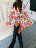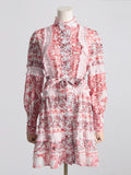 Lace Patchwork Lantern Sleeve Dress