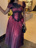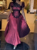 The bright pink color of the dress is bold and striking, perfect for making a statement and standing out in a crowd. The lace fabric adds a sense of delicacy and refinement, and the shimmering effect gives a touch of glamour and shine.