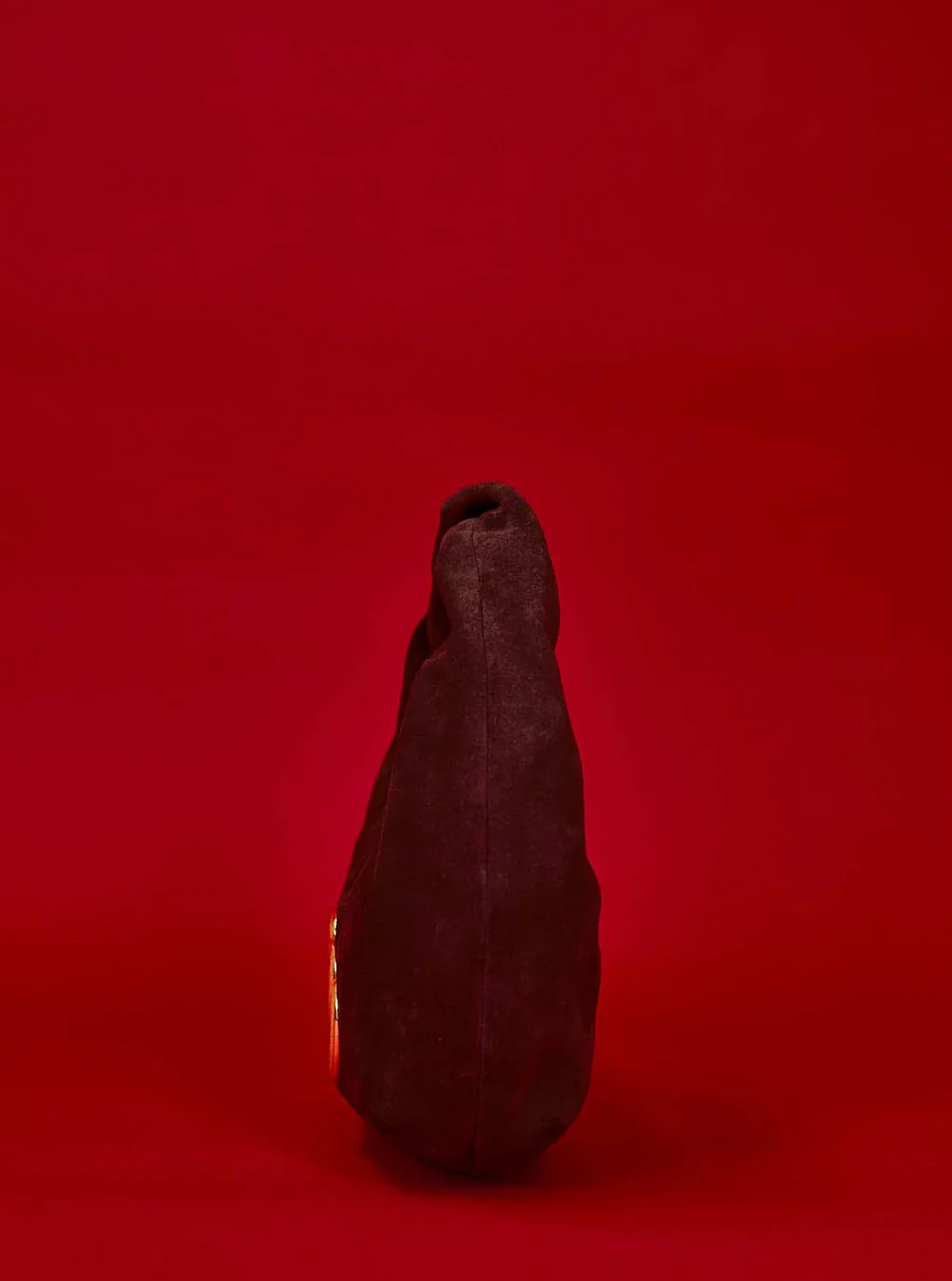 Its compact design and signature slouchy structure make it the perfect day-to-night companion. Accented with the gilded Kai logo, this suede edition adds a chic, textural dimension to your collection.