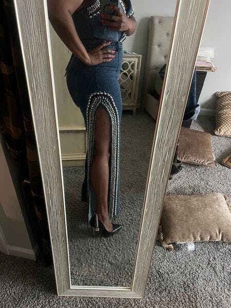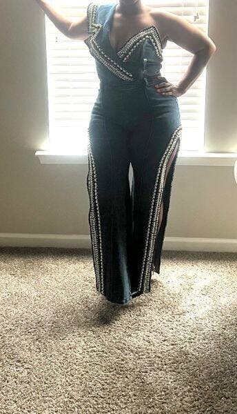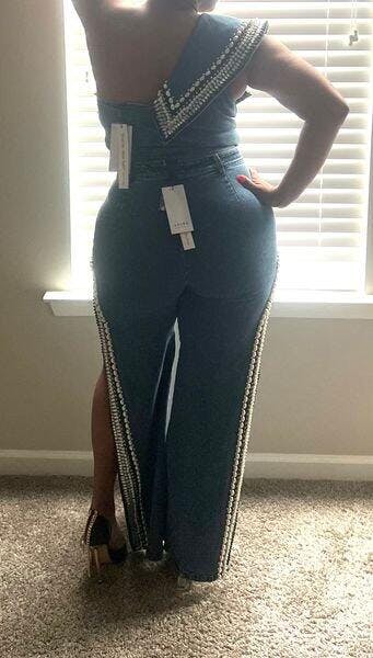 Loved the oufit so many compliments. Only problem is that some of my beads on my pants leg came off .