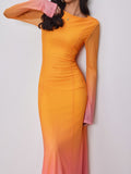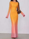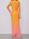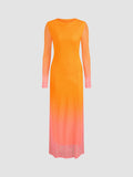 Mesh Round Neck Gradient Maxi Dress