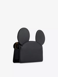 - Rectangular shape, Mickey Mouse ears design at top, detachable wristlet, detachable chain shoulder strap, monogram plaque at flap front, all-over grained leather, gold-toned hardware, one main compartment, two internal slip pockets and three card slots, internal brand patch, fully lined