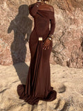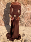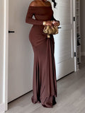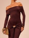 Off Shoulder Long Sleeve Wrap Maxi Dress