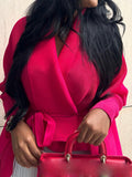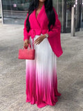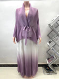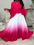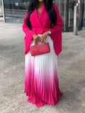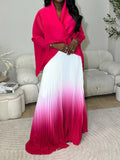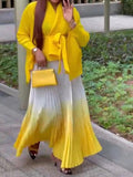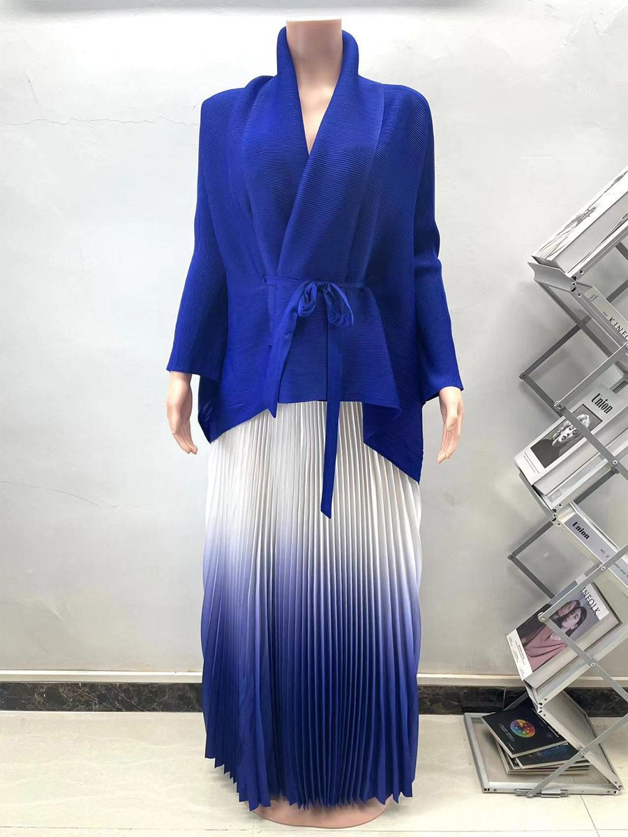 Expertly designed for versatility, this 2-piece set features a lapel lace-up waist top and a high waist skirt with Miyake pleats. The gradual change in colour adds a unique touch. Perfect for any occasion, this one size set promises to elevate your wardrobe effortlessly.