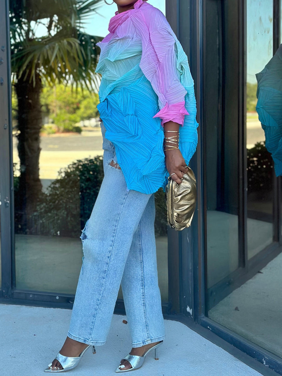 Pleated Multi-color Quarter Length Sleeve Dress