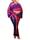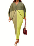 Plus Size Pleated Batwing Sleeve Dress