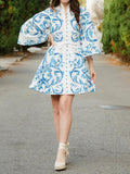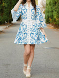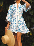 Printed Button Up Lace Up Mini Dress