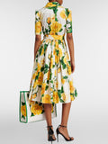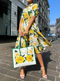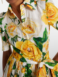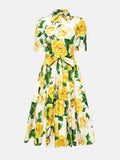 Printed Lace Up Short Sleeve Shirt Dress