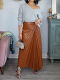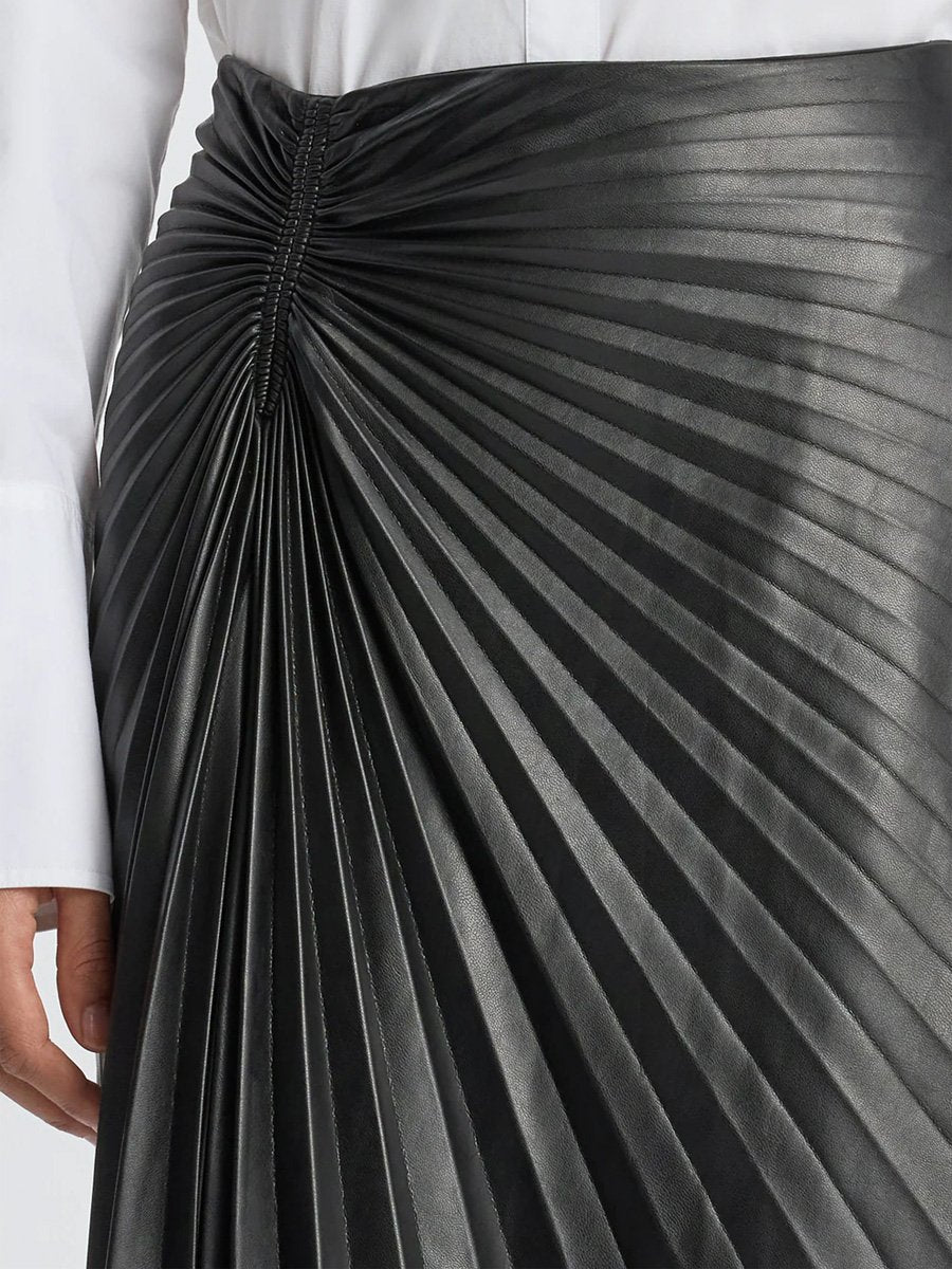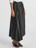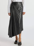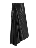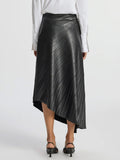 PU Asymmetric Hem Pleated Skirt