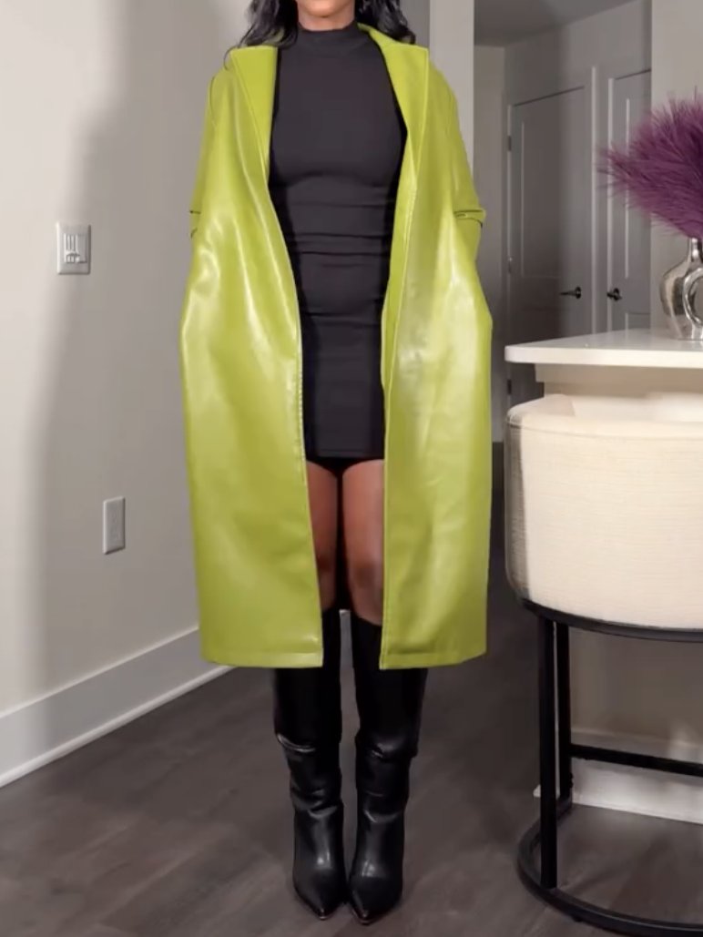 Features: Leather trench coat women, women's leather jacket, long length, long sleeves, lapel design, waist belt tie, loose fit, soft touch, fine stitching.