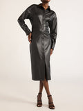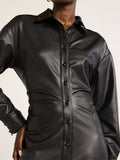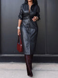 PU Long Sleeve Button Up Shirtdress