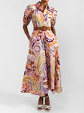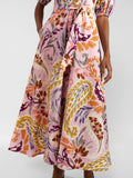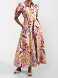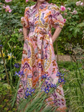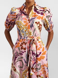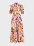 Puff Sleeve Printed Lace Up Dress