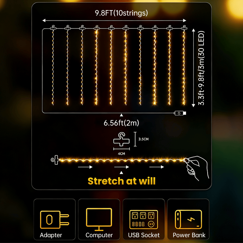 Whether youâre decorating your bedroom, living room, store display, wedding, or holiday event, these curtain lights instantly add depth, charm, and elegance. Watch your space turn from plain to breathtaking with just one plug-in.