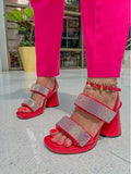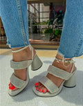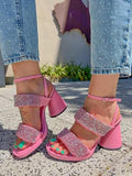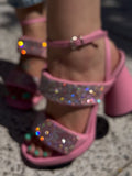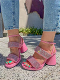 Rhinestone Sparkly Thick-Heeled Sandals