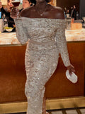 Sequin Off Shoulder Sexy Maxi Dress