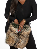 Wear this beauty as a crossbody bag with a detachable adjustable leather strap. Remove the strap and flip the bag over to carry as a chic clutch. This bag features a snap closure and is spacious. The back of the bag features a zipped pocket for easy access to your phone and essentials. One side of the bag is silver fox, the other side is leather to prevent shedding/ friction against your clothes.