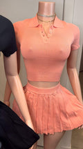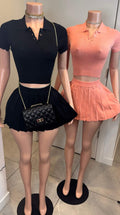 A polo style matching skater skirt set. Available in black and coral.