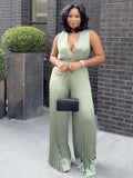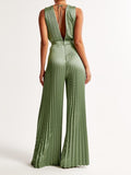 Sleeveless Waist Cutout Pleated Jumpsuit