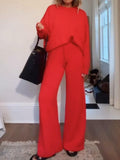 Solid Color Knitted Sweater And Trousers Set