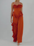 Spaghetti Straps Elaborate Pleated Ruffles Two Pieces Set