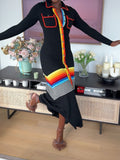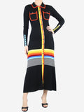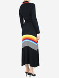 - This midi dress is made from ribbed wool-blend patterned with colorful stripes and traced with orange piping around the collar and pockets. Unfasten a few buttons at the hem to great a deeper slit.