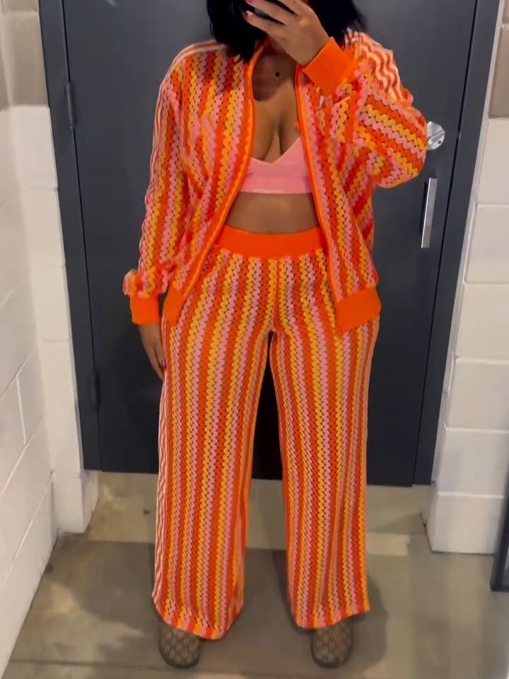 - In a Semi Lucid Fuchsia, Hazy Orange and Semi Solar Orange striped design, this top is made from a soft and lightweight recycled polyester in a crochet design.