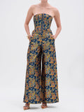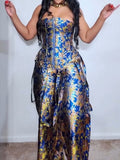 This chic piece is crafted from a shimmering brocade material adorned with a lush, colorful floral pattern. It features a curve-accentuating, sleeveless silhouette, a rounded neckline and hem, internal structural boning, a gold-tone zip-front closure, and a lace-up back panel to ensure the perfect cinched fit. Complete with smooth interior lining and tonal, detachable cargo straps at the hem for added edge. Pair it with the coordinating Surrender Floral Trouser for a fierce finish.