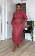Sweater Outfits Set Long Sleeve Crop Top Ribbed Split Bodycon Midi Long Skirt Knit Dresses