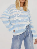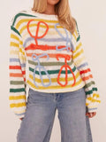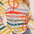 Keeping things cosy and bright with this adorable jumper. Featuring a multi stripe knit material, a swirl detail and long sleeves.