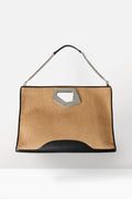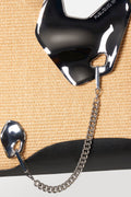 The ultimate beach bag, crafted from smooth raffia and accented with bold chrome islands and hanging chains. Designed with a generously sized interior, it provides ample space for everything you need. From your beach towel and sunscreen to your seaside essentials. Breezy yet functional, this tote effortlessly transitions from sunlit mornings by the shore to relaxed evening gatherings, ensuring you remain organized and stylish all day long.