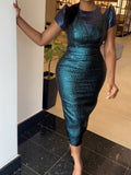 Two Toned Brocade Midi Dress