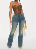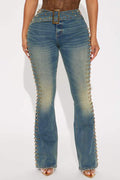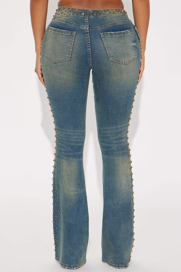 Vintage Wash Embellished Tinted Bootcut Jeans