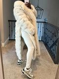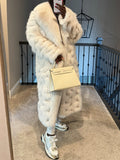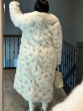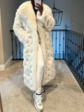 The White Eco-friendly Fox fur is a necessity in your closet. It features snap closure, two pockets, and snaps on the side (see photo 3) which can be opened to provide more room for your hips or to give you more ease when getting in and out of the car. This coat runs generously. Model is 5'5'' 40" bust, 29" waist, 45" hips wearing size M. Customize in any colorgives more room for your hips/