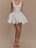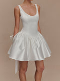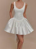 Turn heads in the Fashgoods Satin Mini Dress, a flirty and feminine design perfect for special occasions. With a scoop neckline and a structured bodice, this dress provides a flattering fit, while the side zip ensures effortless wear. The full mini skirt, complete with a playful tulle underlay, adds volume and movement, creating a whimsical silhouette that catches every eye. A charming bow detail graces the back, adding a touch of elegance to this stunning piece. Fully lined for comfort, this dress is your go-to for making an unforgettable impression.