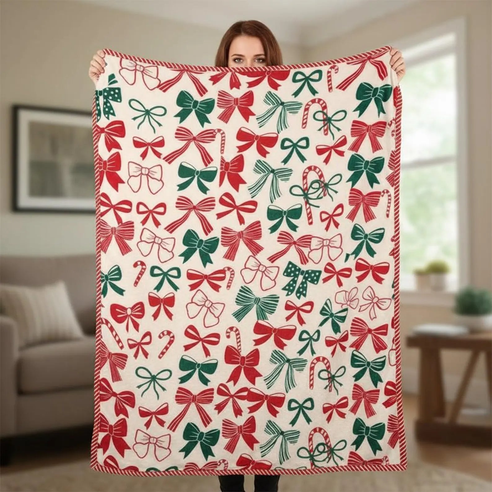 Snuggle up in holiday spirit with this Candy Cane Christmas Blanket! Featuring charming candy canes, festive bows, and a snowy winter design, it’s the perfect cozy touch for your cabin or home décor. A warm and cheerful gift for Christmas lovers! ?✨
