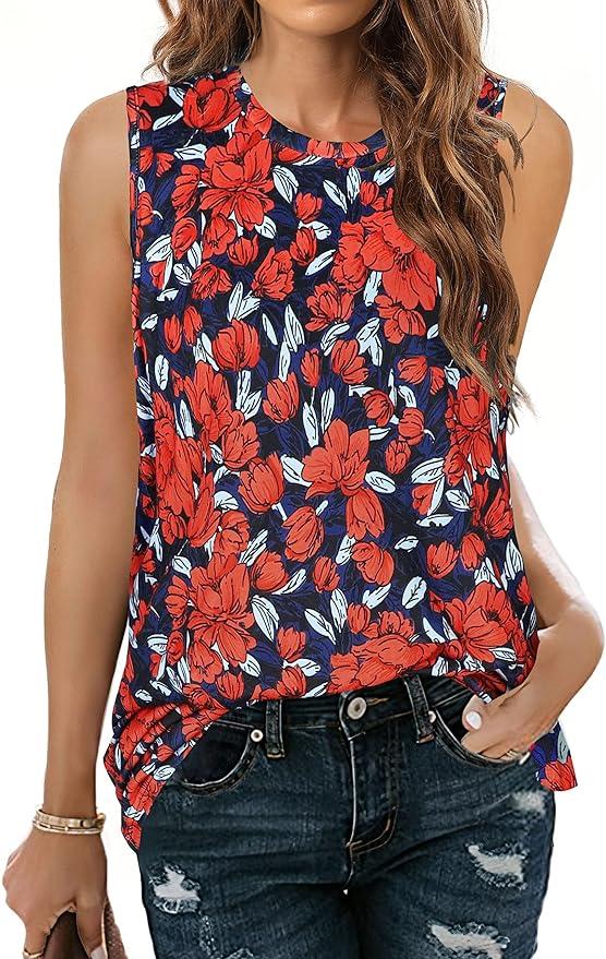 Women Summer Tops Sleeveless Tank Floral Casual Cute Loose Fit Cute T-Shirt Tunic