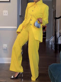 Yellow Lapel Blazer And Casual Pants